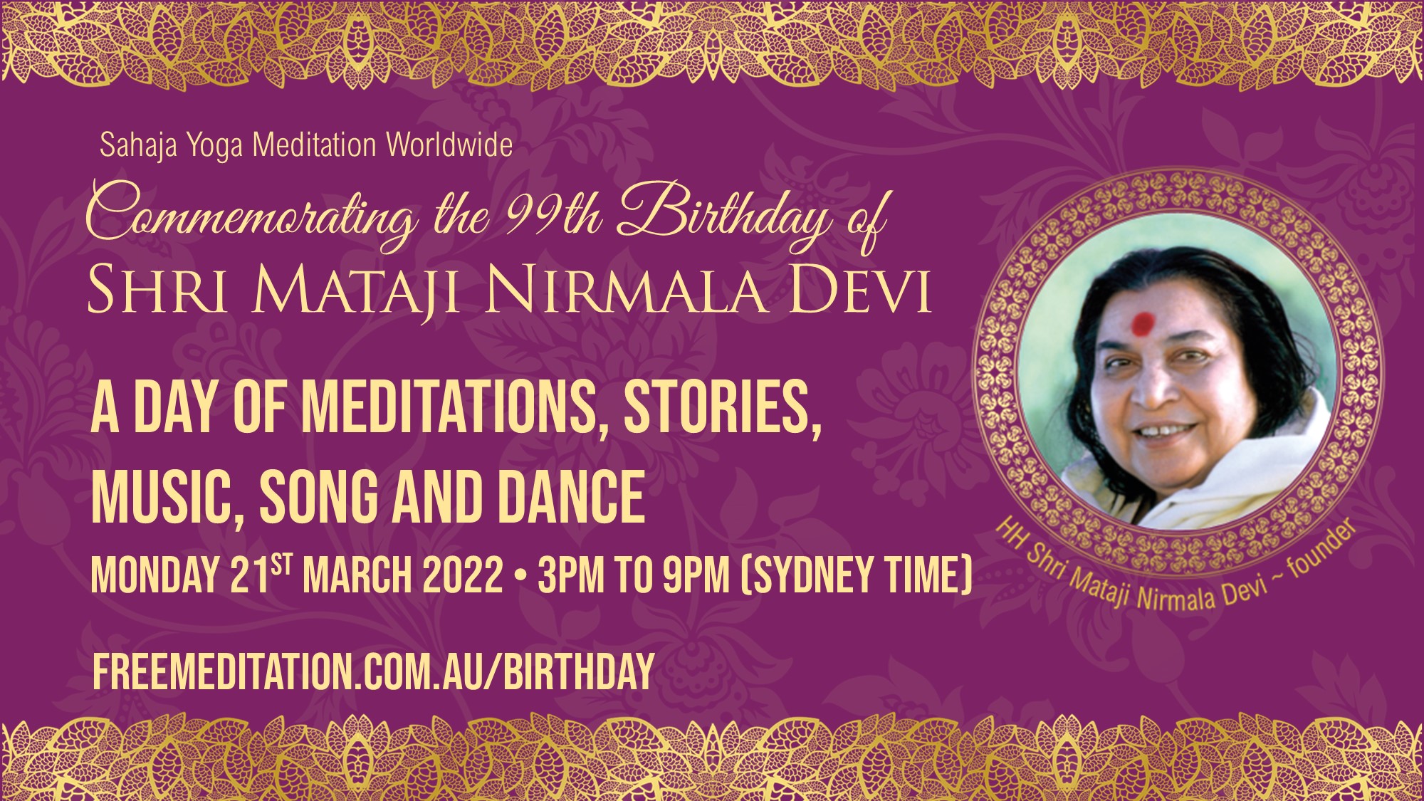 FREE MEDITATION: On this day, we celebrate the 99th Birthday of Shri Mataji Nirmala Devi, the founder of Sahaja Yoga Meditation. Shri Mataji is honoured globally for dedicating her entire life to the spiritual ascent of humankind.